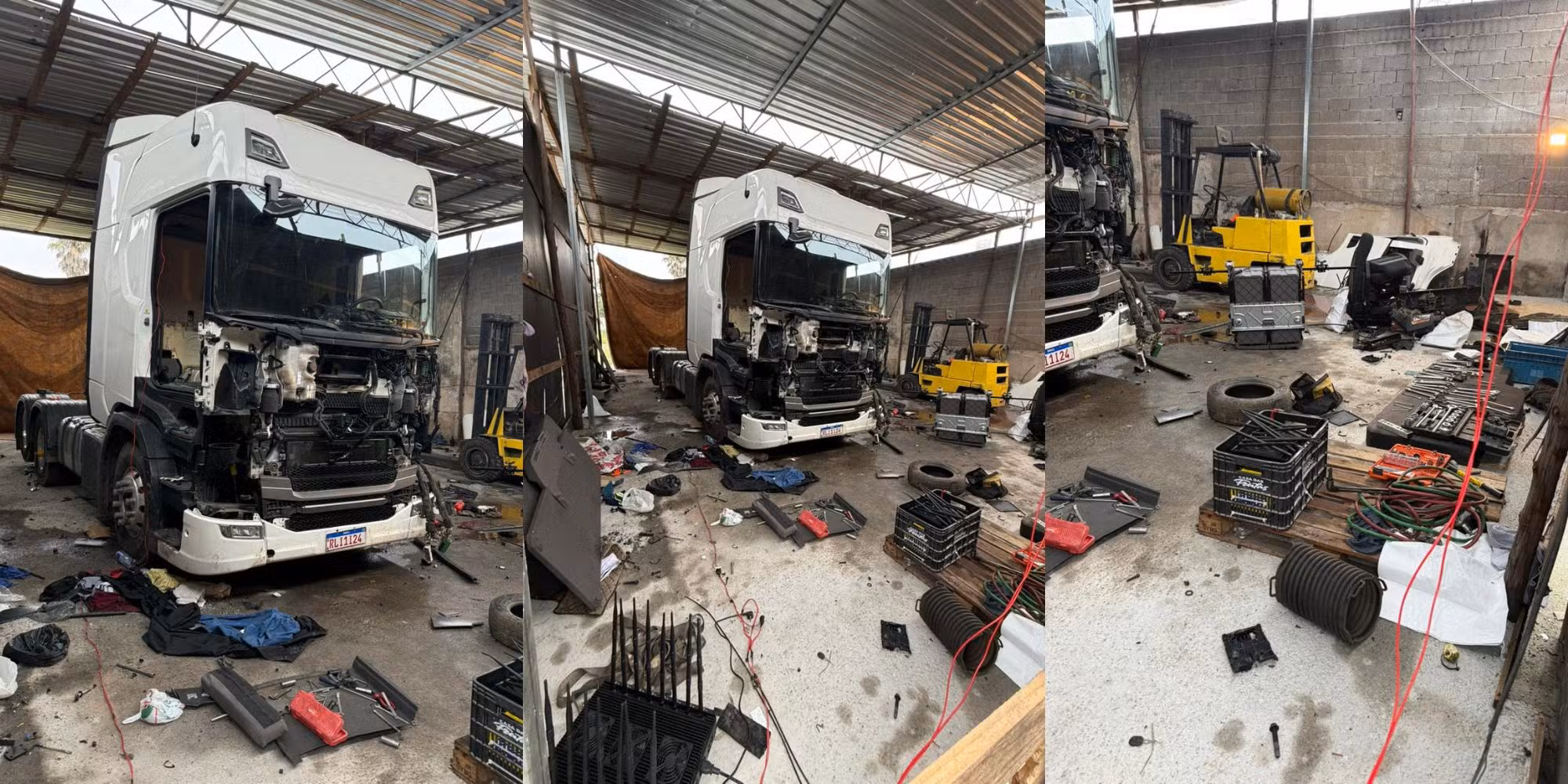 Ao chegarem ao endereço em Suzano, as equipes da PM localizaram um caminhão que havia sido roubado apenas 24 horas antes. O veículo já estava em processo avançado de desmonte. O cenário encontrado pelos agentes revelou a estrutura profissional da quadrilha: